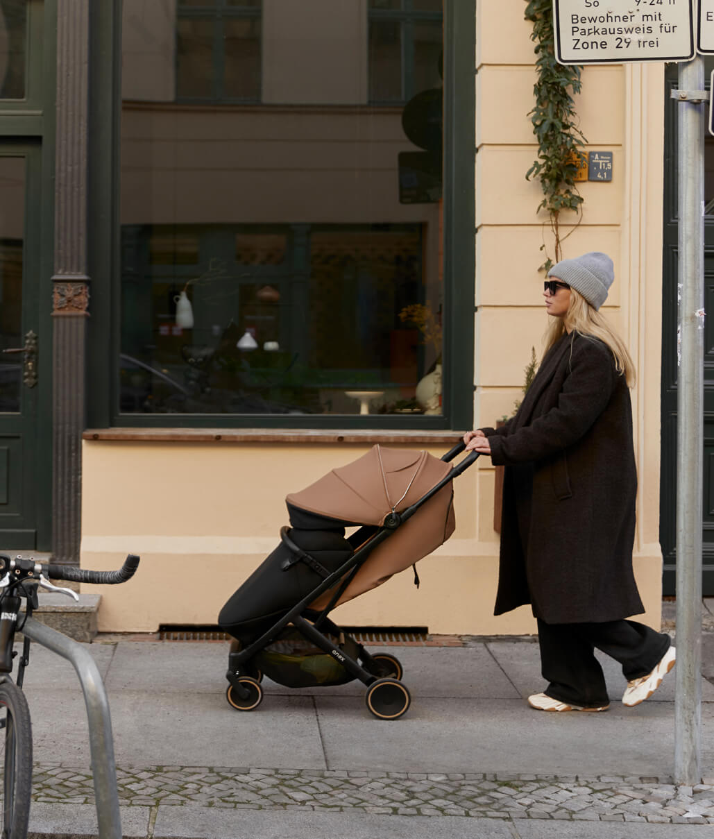 The stroller’s structure has been optimized in terms of folded dimensions — Air-X² is even more compact (55 × 45 × 24 cm) and maintains a stable upright position, making it easier to store in limited spaces.