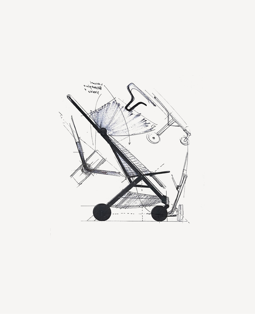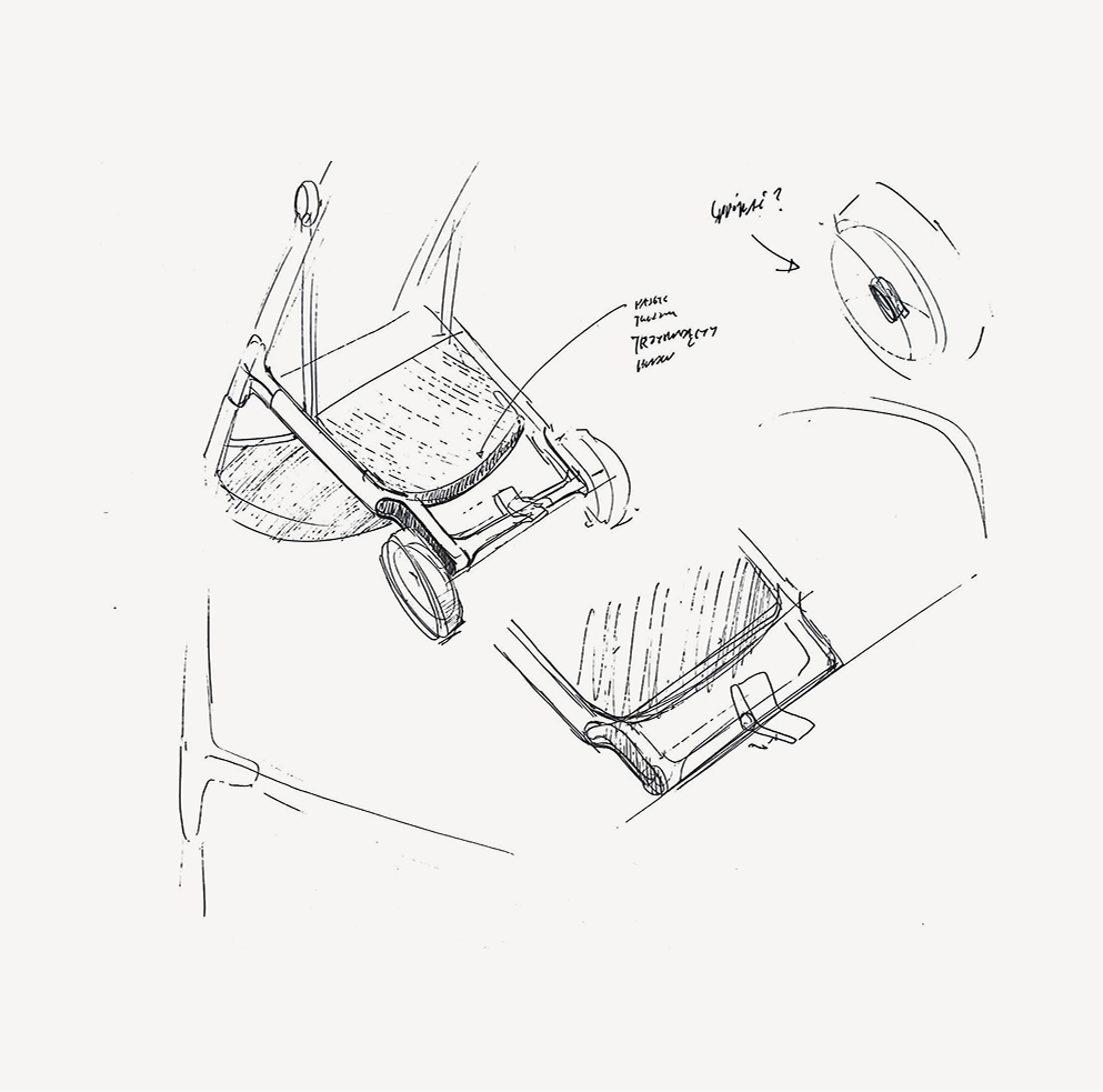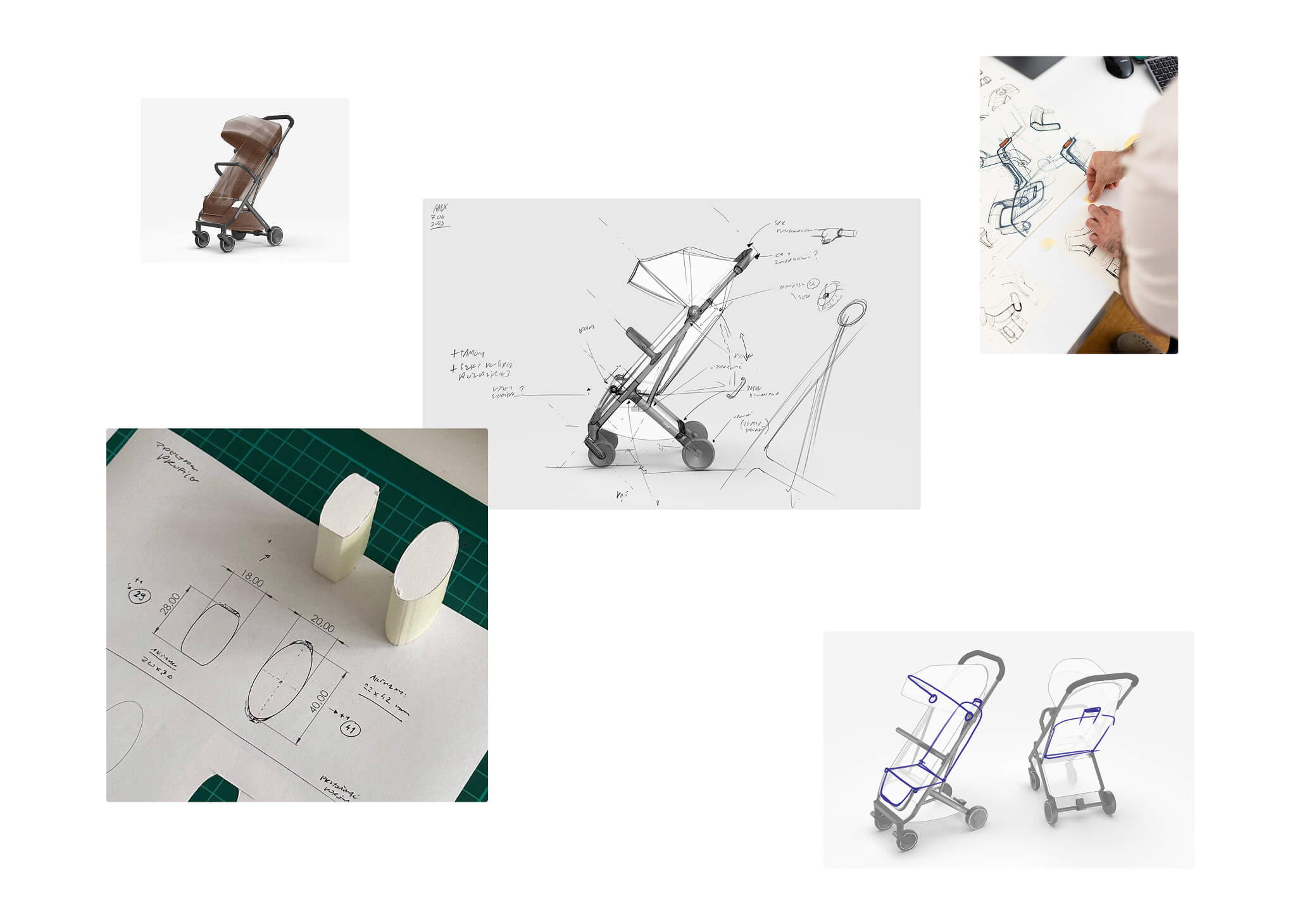 The project scope included ergonomic analysis of the child’s seating position, comprehensive design development of all product components with a focus on weight optimization (7 kg), upholstery design, branding implementation, and CMF design, culminating in a dedicated color collection.