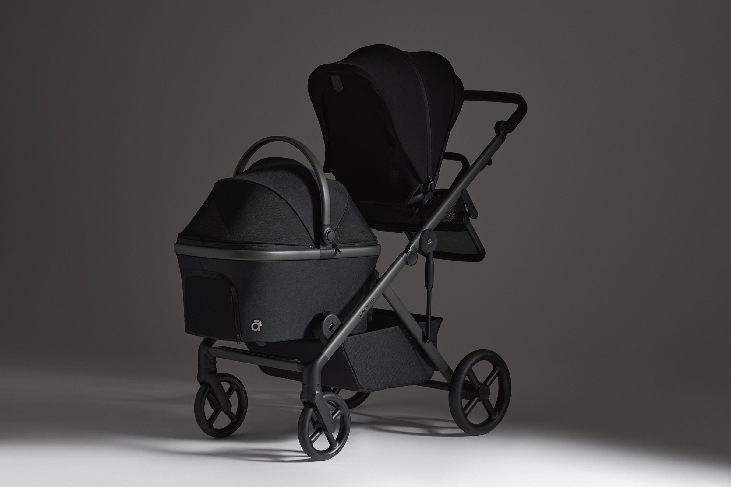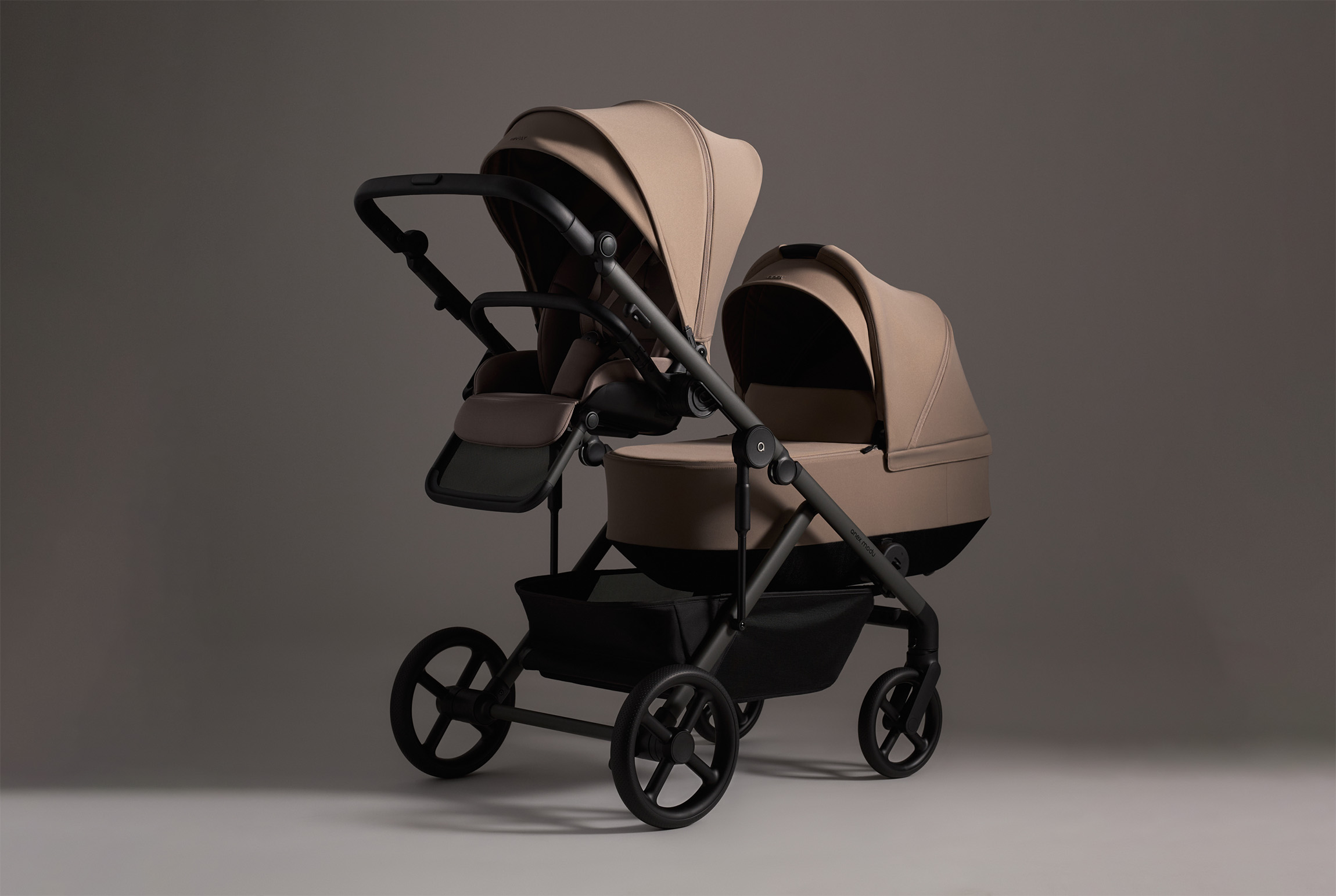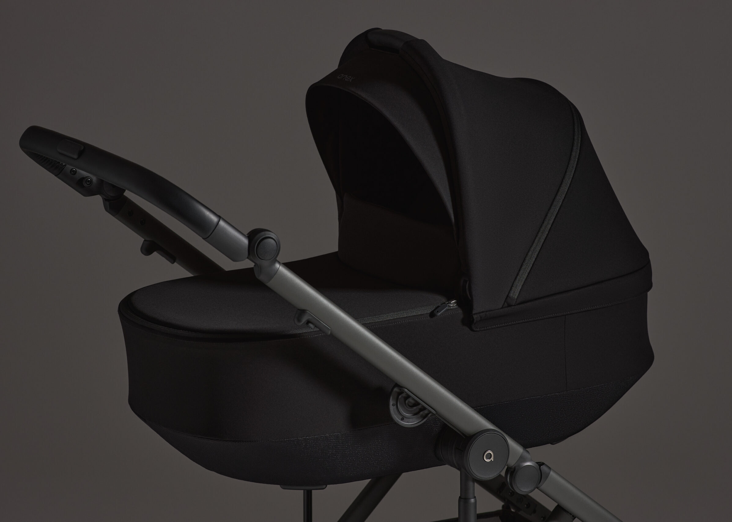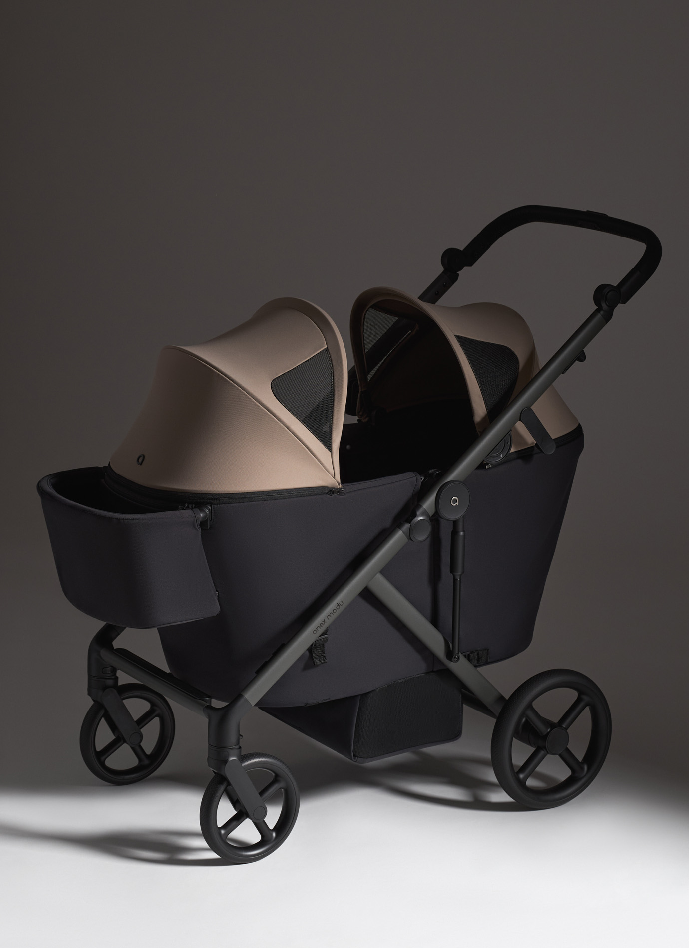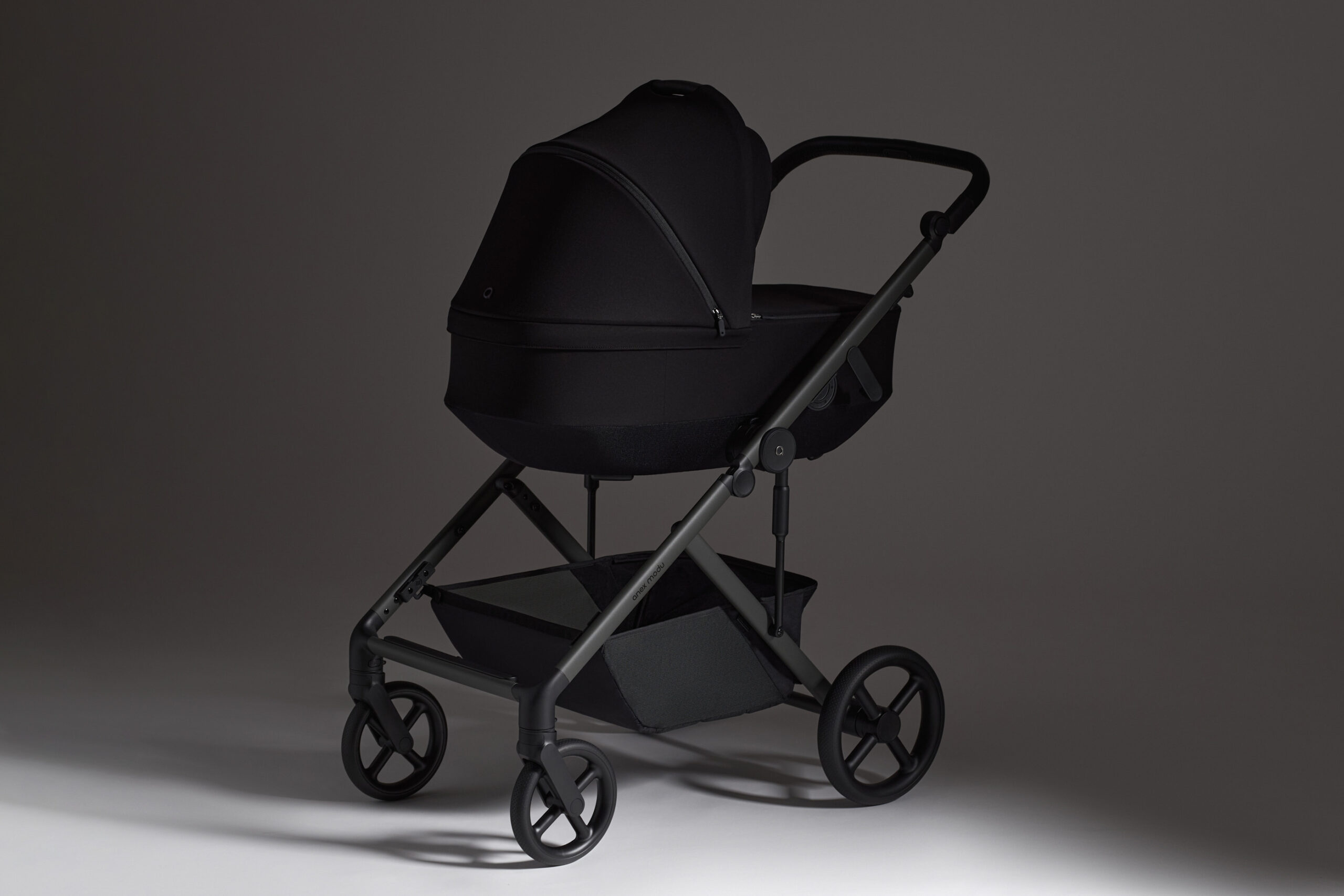 The newly designed carrycot features a distinctive geometry that increases the field of view for the second passenger. Both the carrycot and the frame — across different configurations — are foldable, making transport and storage significantly easier.